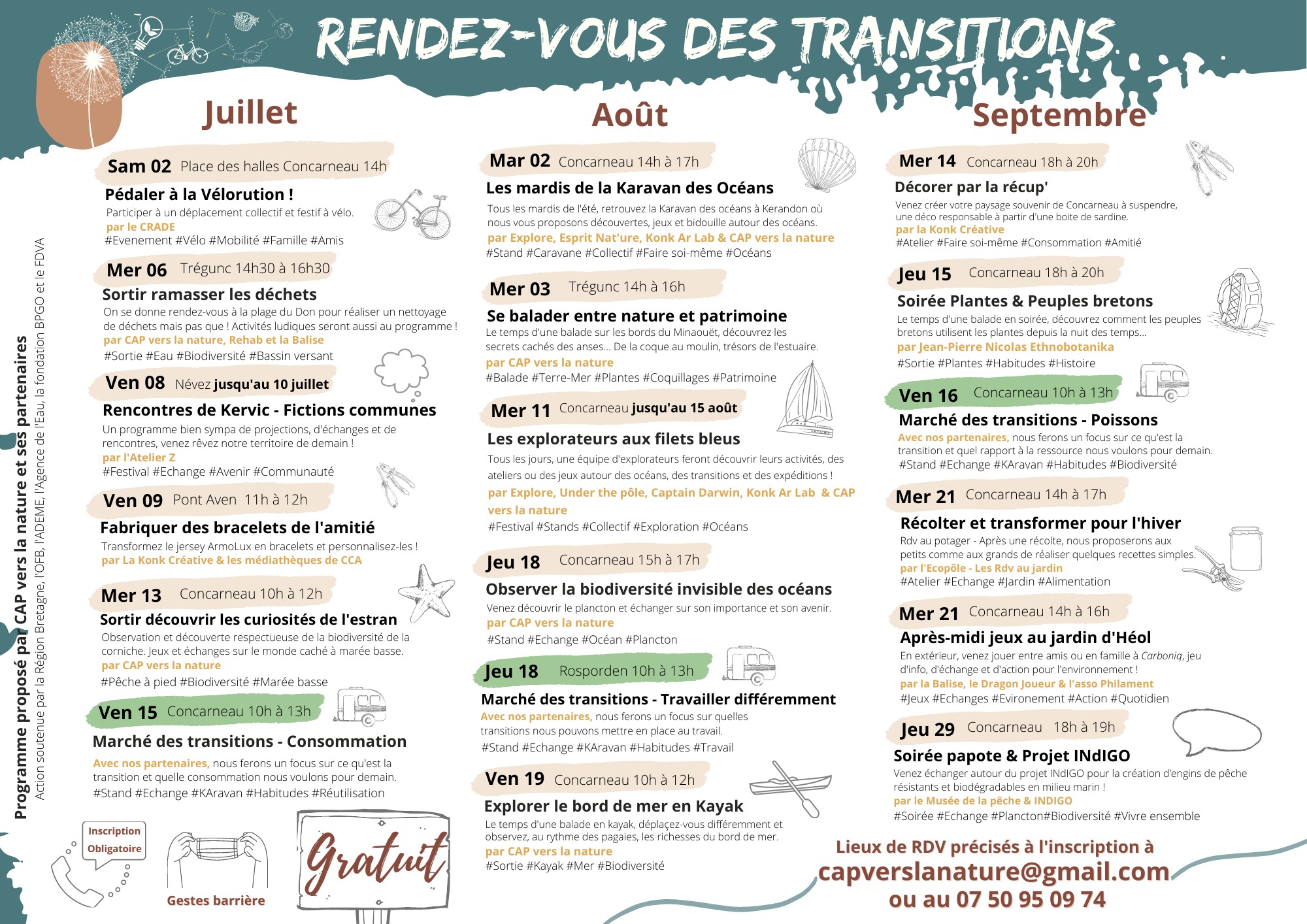 Le projet est soutenu par l’Office Français de la Biodiversité, la Région Bretagne, le FDVA (Fond de développement pour la vie associative), Concarneau Cornouaille Agglomération et la DDETS via le contrat de ville, la ville de Concarneau via le dispositif de réussite éducative, la fondation Banque populaire Grand Ouest et la fondation de la mer.